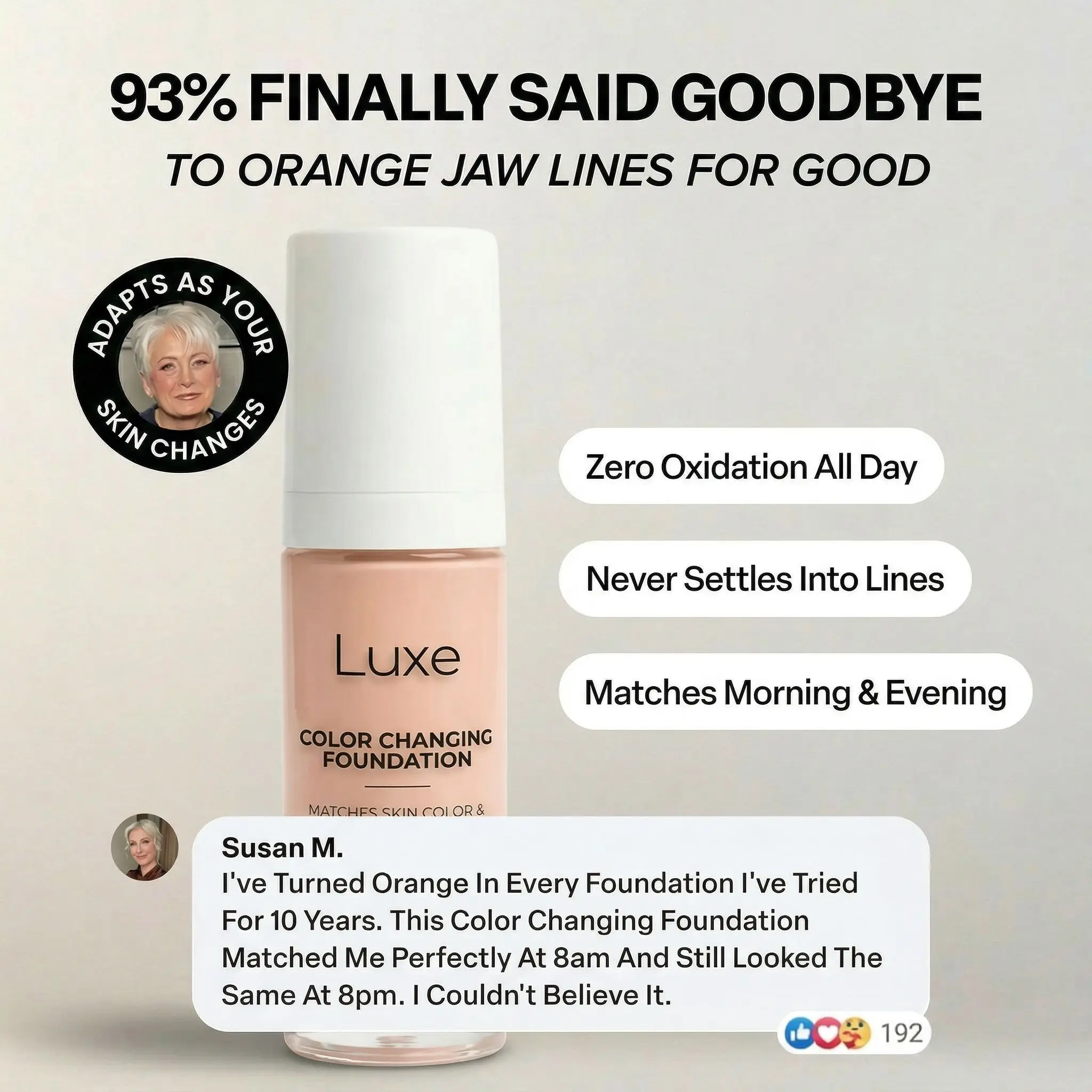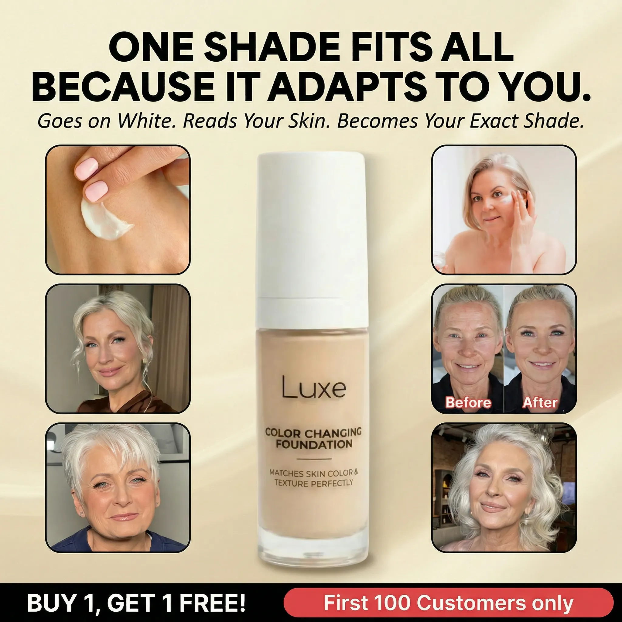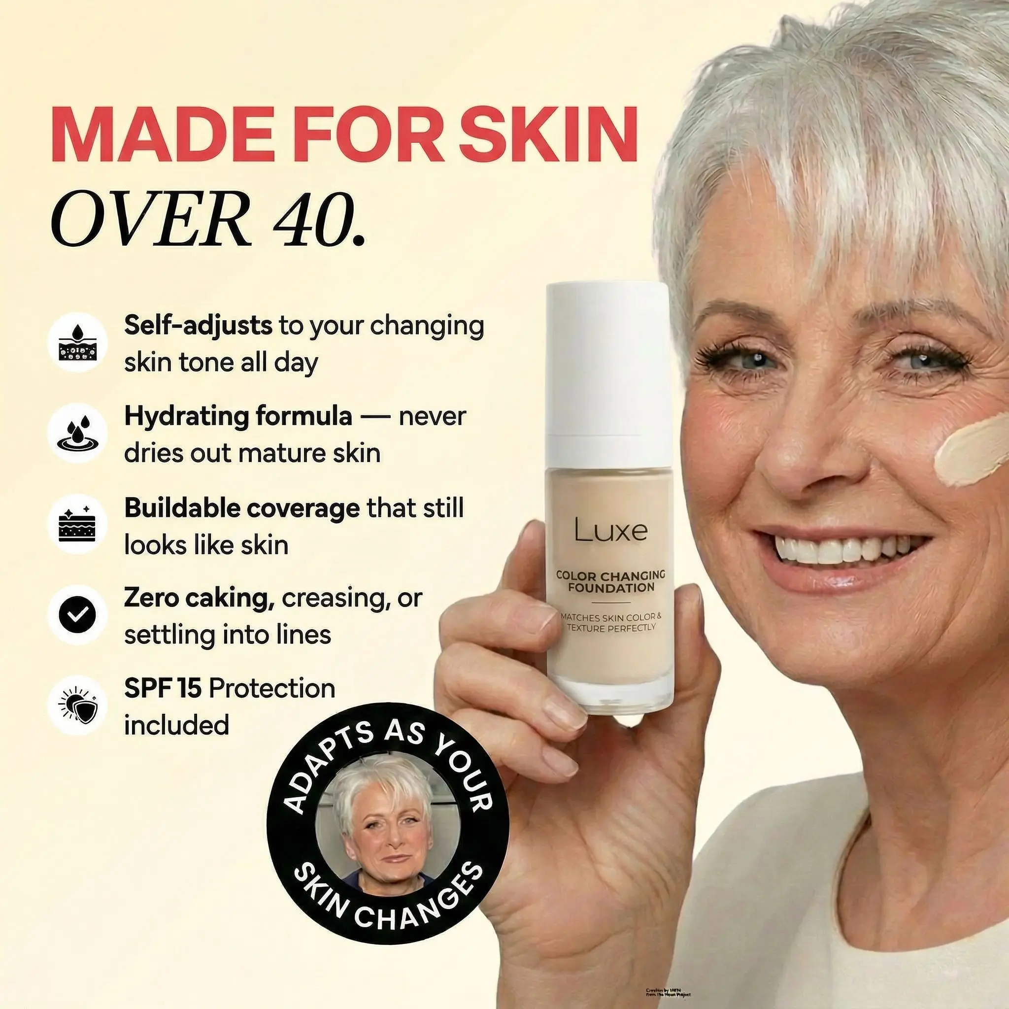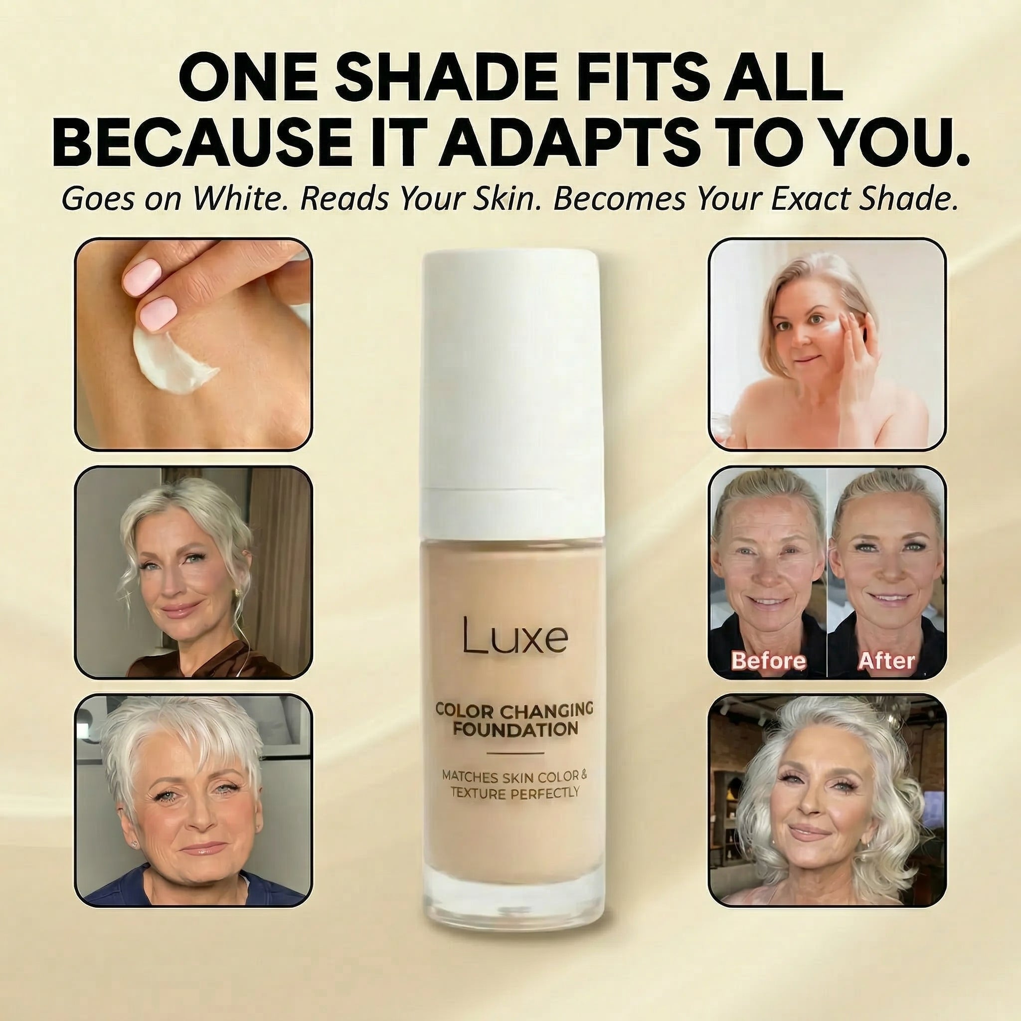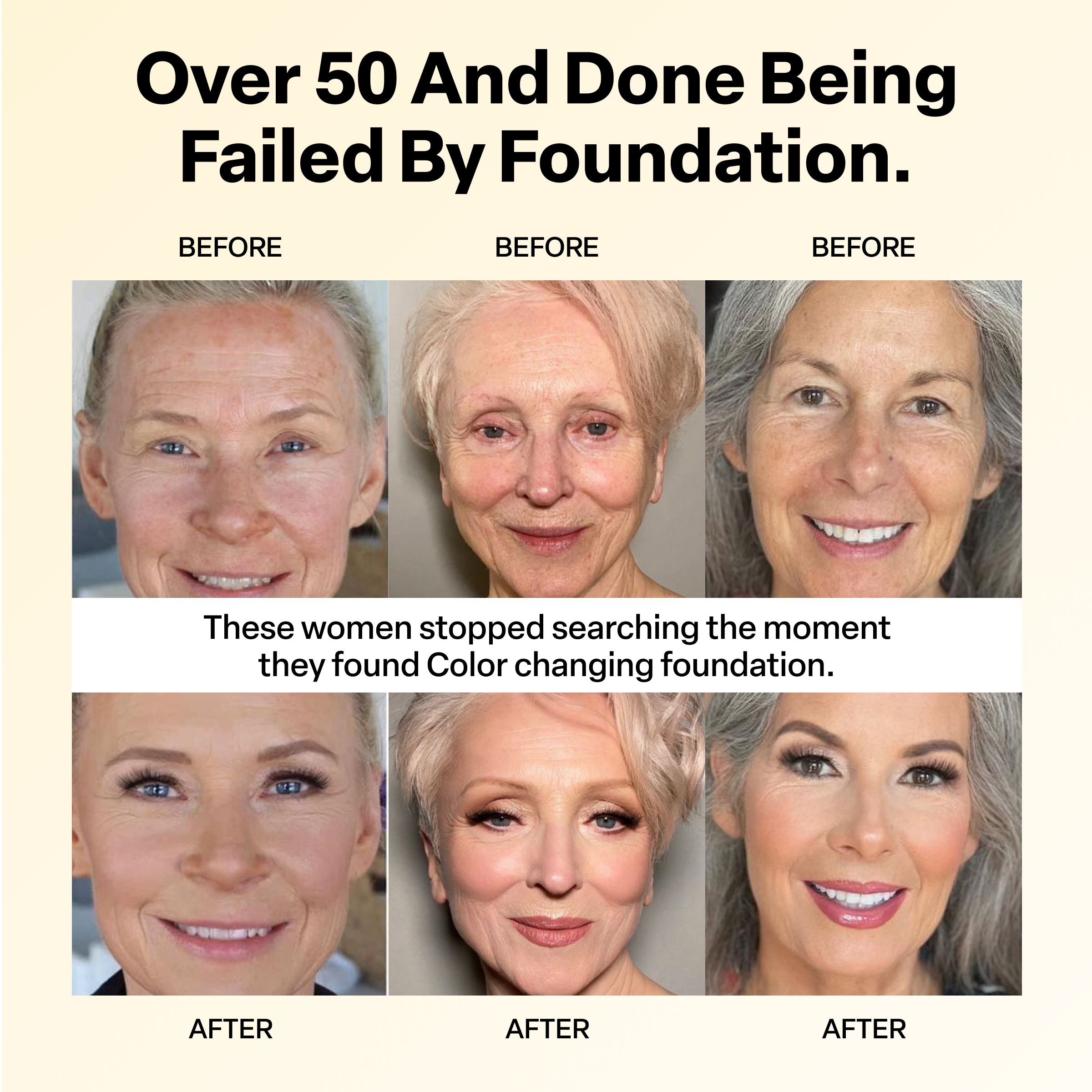 The color changing foundation helping women 50+ feel like themselves again, lightweight, natural coverage without heavy makeup, harsh treatments, or giving up on looking their best.